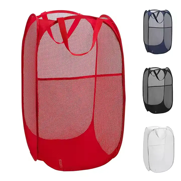 Découvrez le Sac Panier à Linge Pliable en Maille Multicolore, la solution pratique et polyvalente pour organiser, transporter et laver vos vêtements en toute simplicité !